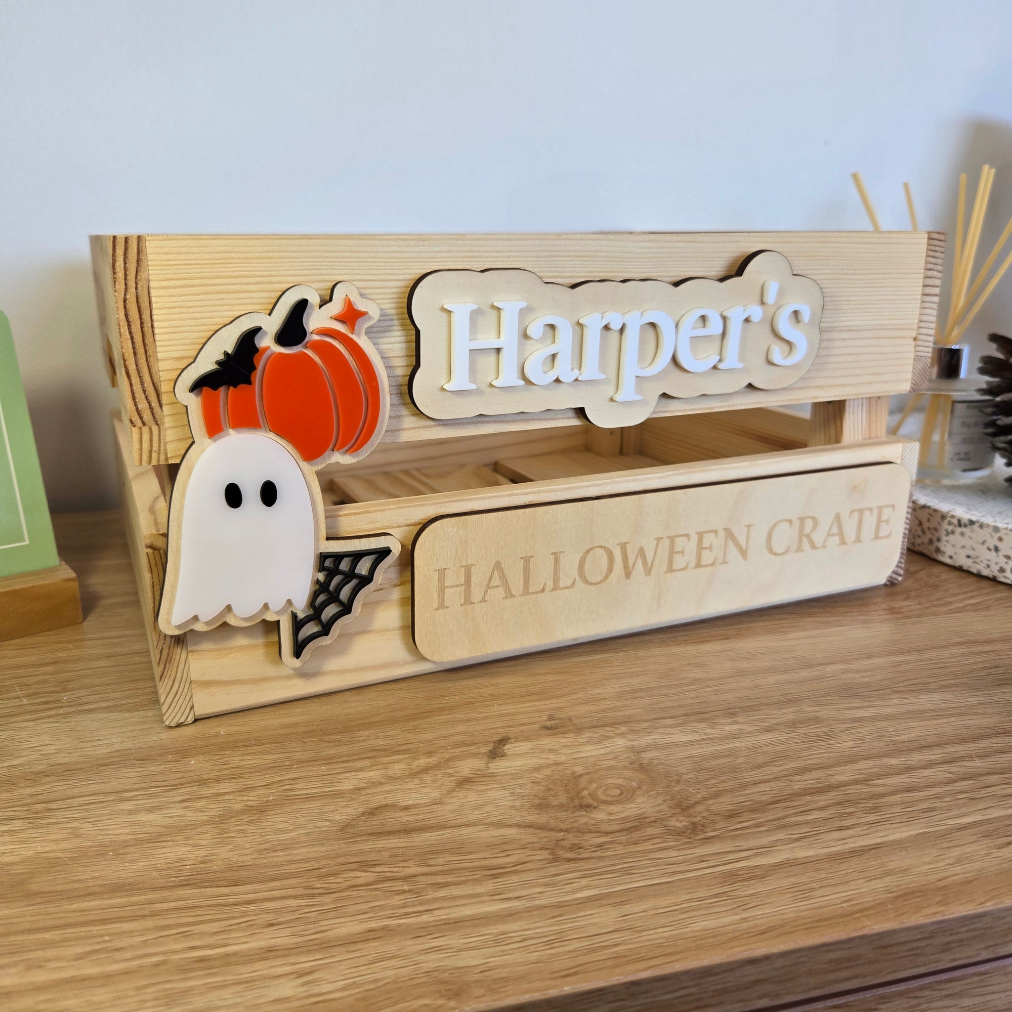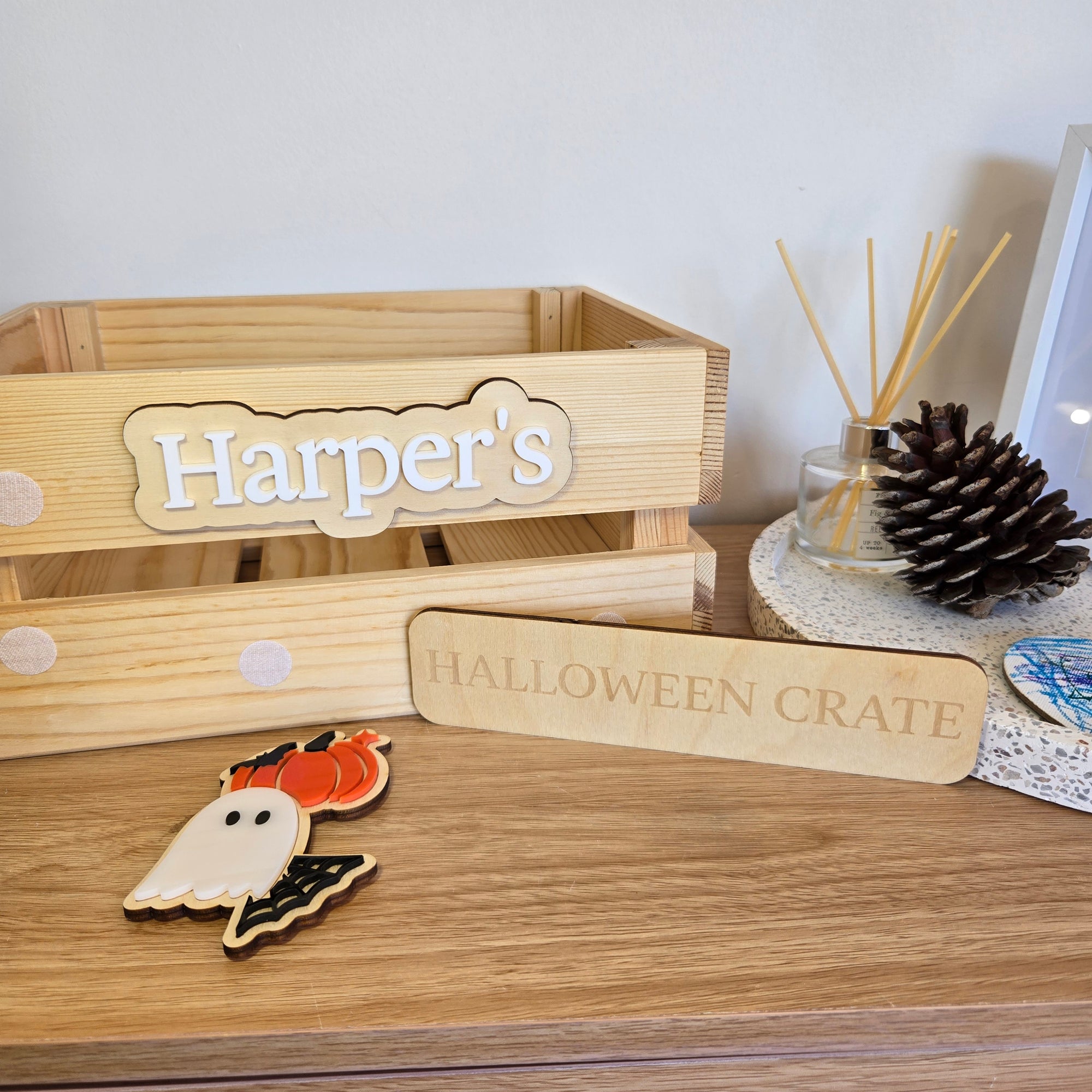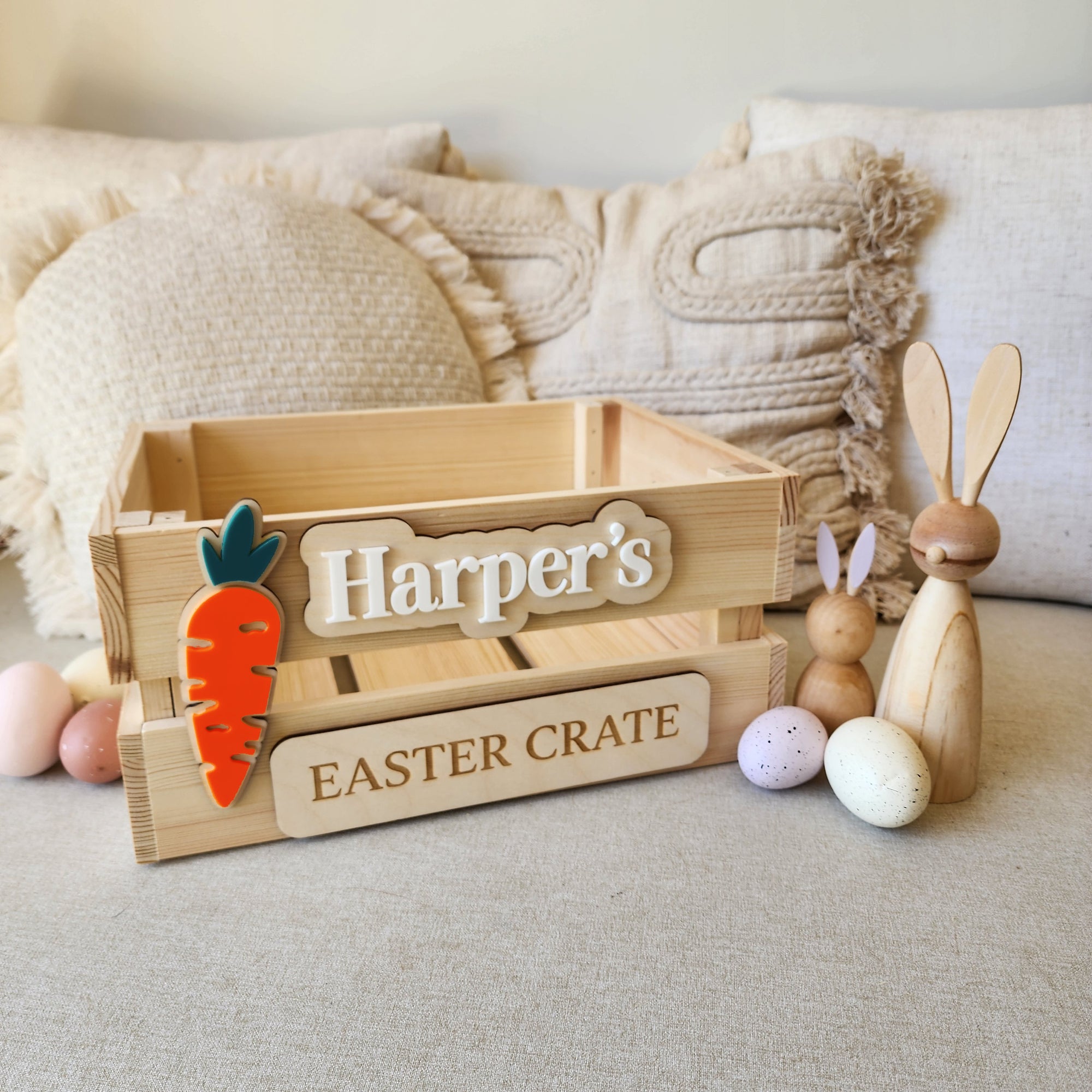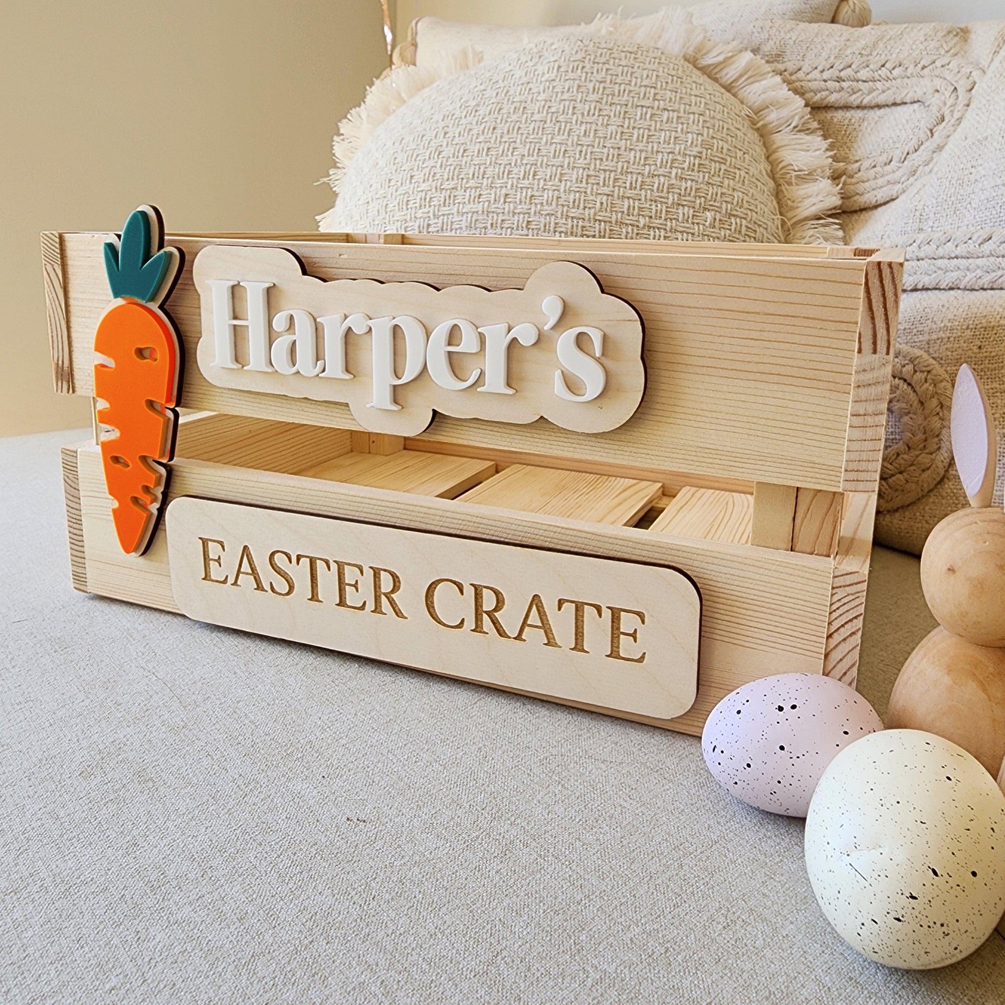 Personalised Wooden Easter Crate with 3D Carrot Tag - Interchangeable Easter Day Keepsake Basket Box