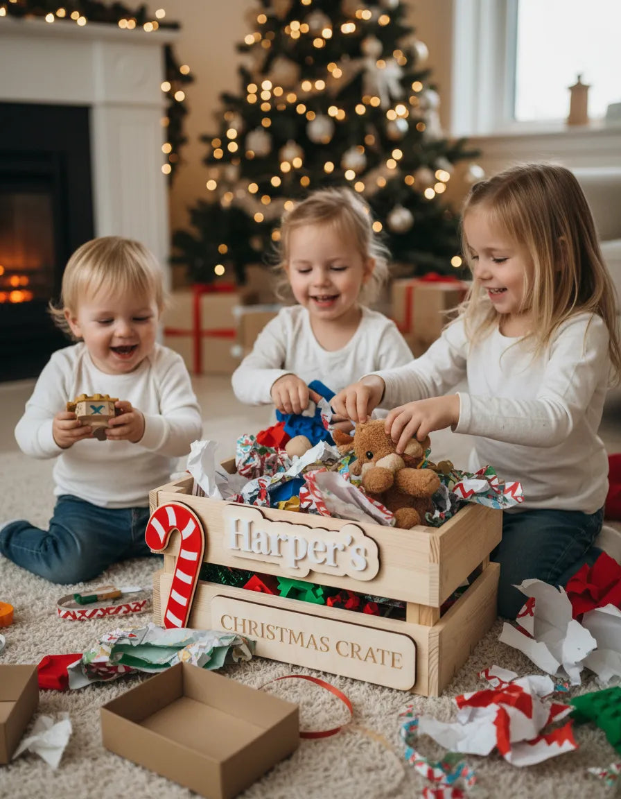 Fast forward a couple of years, they were decorating for Harper and Noah's first proper Christmas together as a family of four. They wanted something special - a keepsake box that could hold Christmas Eve treats, something beautiful enough to photograph, sturdy enough to last through years of excited little hands, personal enough to feel like theirs.
